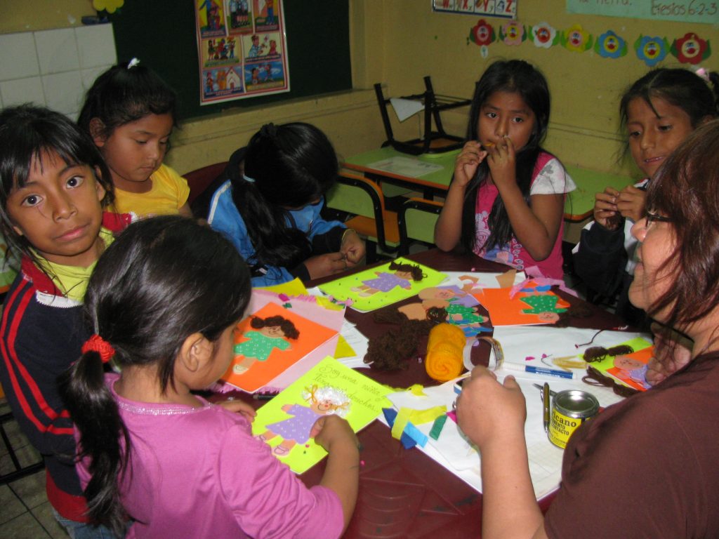 Cada colegio participante recibe nuestra maleta lúdica en la que encontrará un set de nueve juegos -rompecabezas, ludos, dominós, ilustraciones para cuentos, etc.- Con los que implementan las sesiones con sus estudiantes de primaria y secundaria. Adicionalmente, los maestros reciben asesoría especializada sobre cómo abordar casos de violencia a niños y adolescentes identificados en las instituciones educativas.